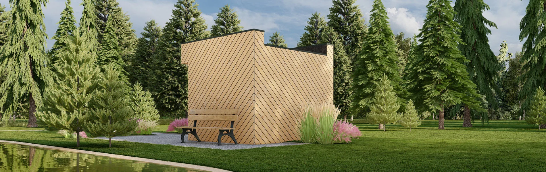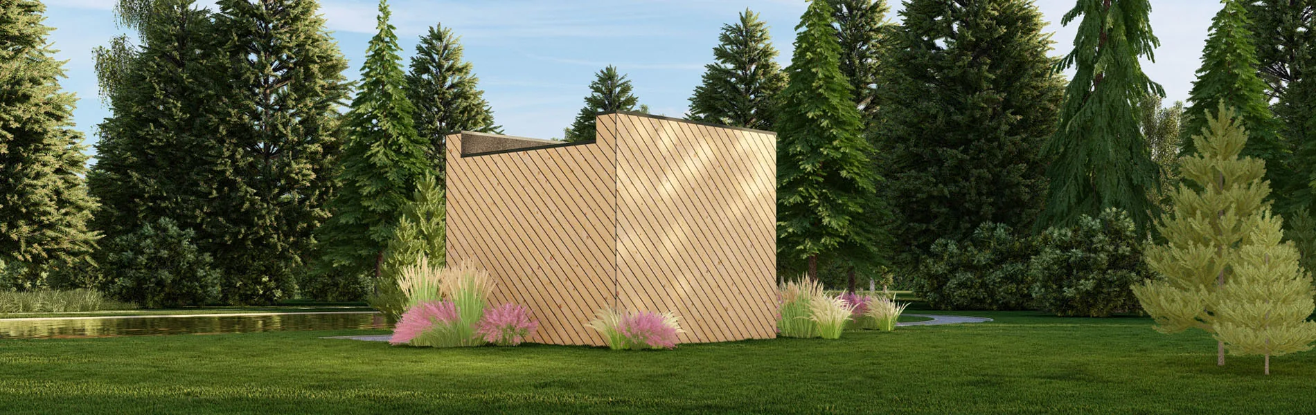 Erwecken Sie Ihr Blockbohlenhaus, Gartenhaus oder Holzgarage mit unserer diagonalen Holzverkleidung zu neuem Leben! Diese einzigartige Verkleidungslösung verleiht Ihrem Gebäude einen dynamischen und modernen Look, der garantiert alle Blicke auf sich zieht. Anders als bei herkömmlichen senkrechten oder horizontalen Verkleidungen sind die Bretter hier in einem Winkel von 45° angebracht, was eine interessante visuelle Wirkung erzeugt.