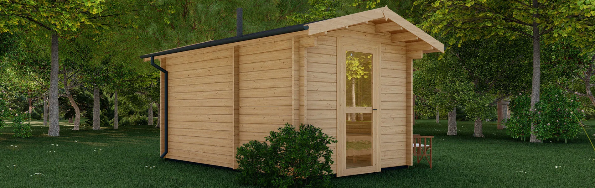 Die Blockbohlensauna Citrus bietet ein traditionelles Saunaerlebnis im eigenen Garten. Mit den Abmessungen von 4,00 m Länge und 2,70 m Breite (inklusive Ecküberstände) fügt sie sich harmonisch in verschiedene Gartenlandschaften ein.