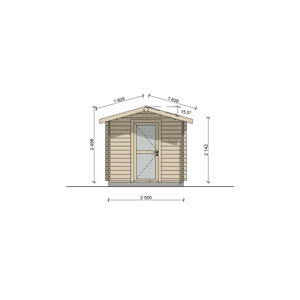 Die Gesamthöhe der Sauna beträgt ca. 2,50 m ab Bodenniveau, was für ein großzügiges Raumgefühl sorgt.