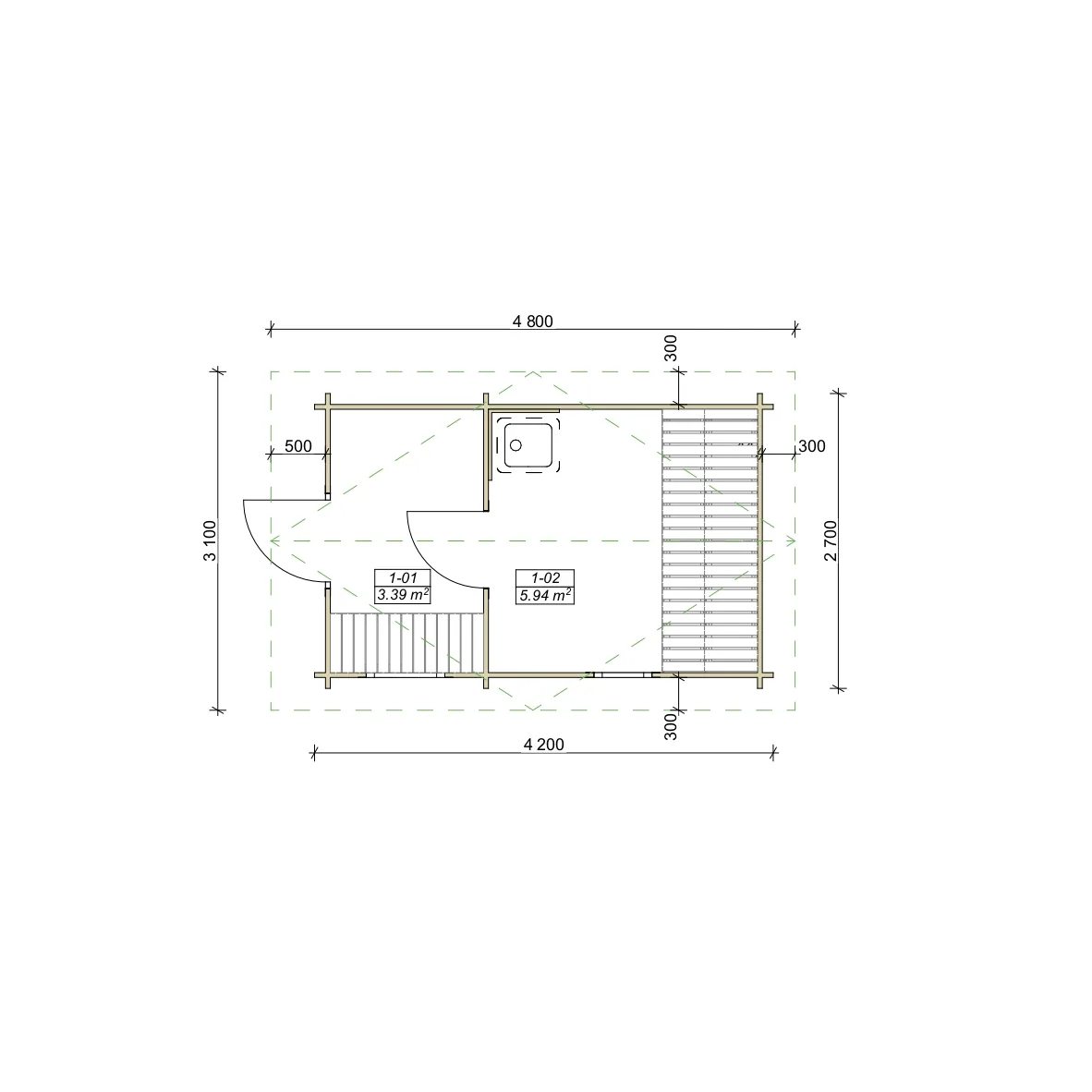 Gefertigt aus 44 mm starken Blockbohlen, überzeugt die Sauna durch ihre robuste und langlebige Konstruktion. Die massive Holzbauweise sorgt für eine gleichmäßige Wärmespeicherung und ein angenehmes Raumklima.