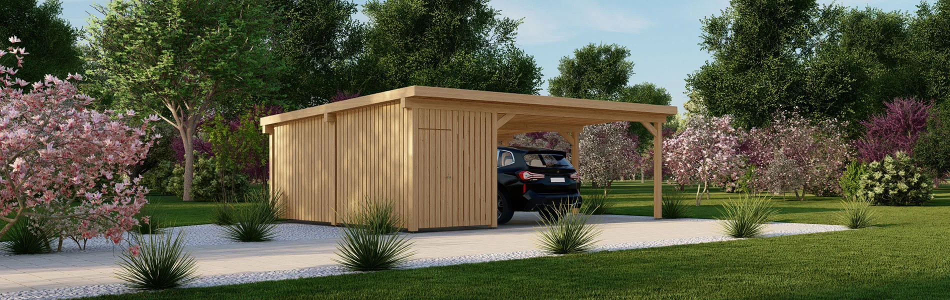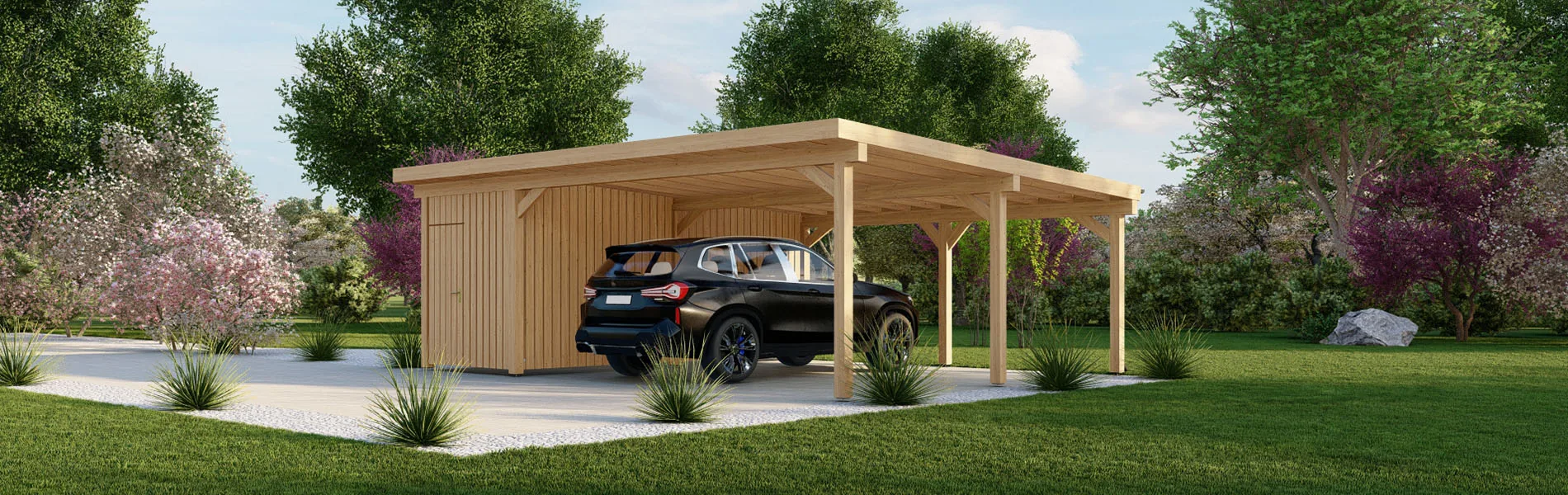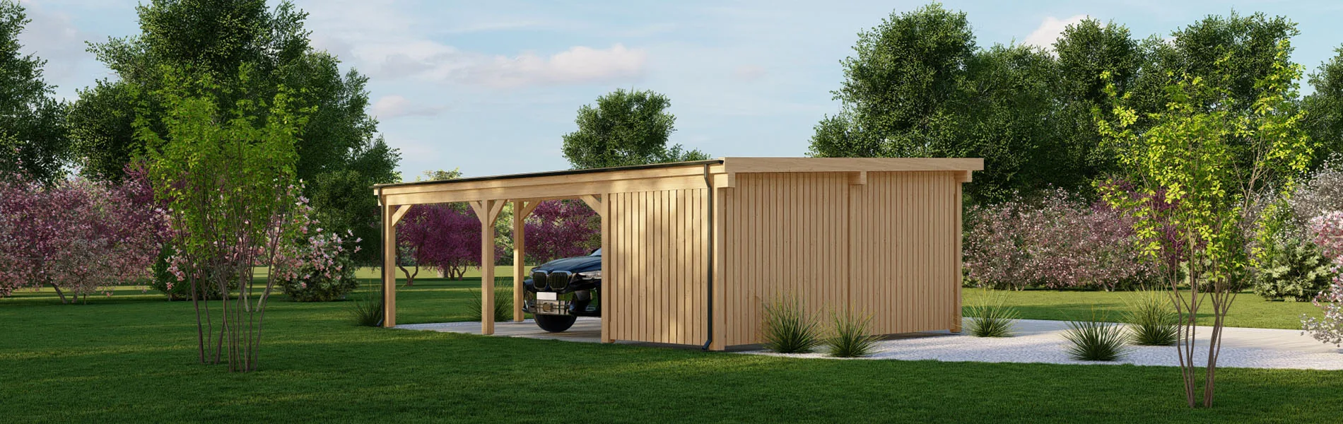 Unsere Carports werden aus nordischer Kiefer und Fichtenholz hergestellt, die nicht nur langlebig und robust sind, sondern auch umweltfreundlich und nachhaltig ist. Wir legen Wert auf Qualität in jedem Schritt des Herstellungsprozesses, um sicherzustellen, dass Ihr Carport lange Zeit hält und Sie zufriedenstellt.