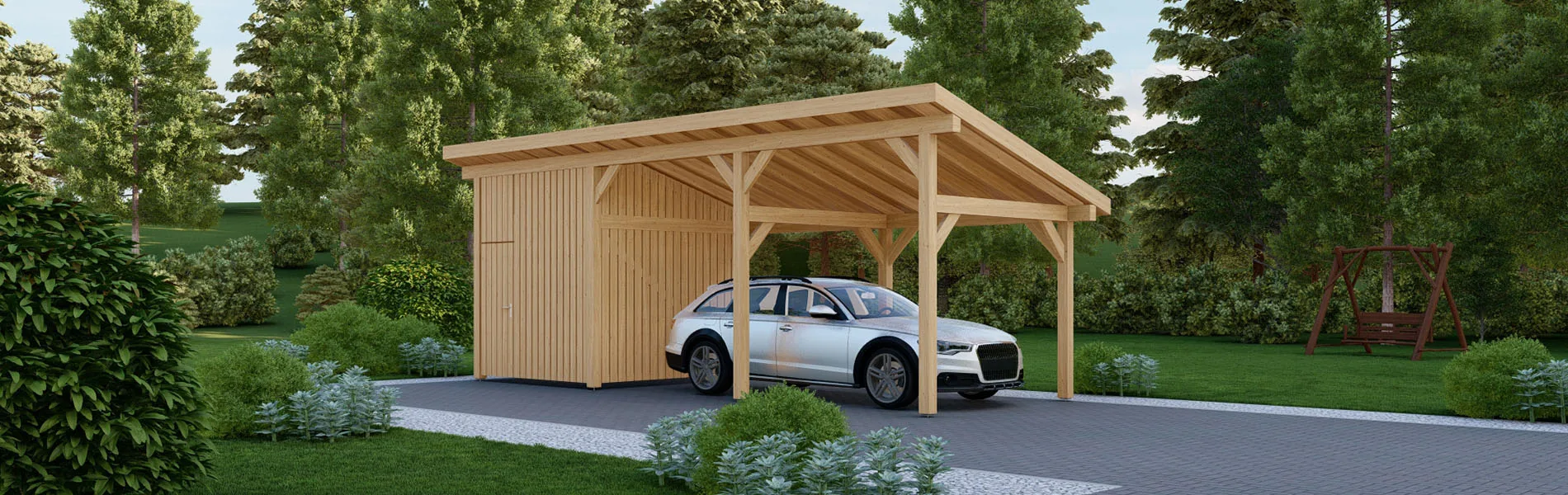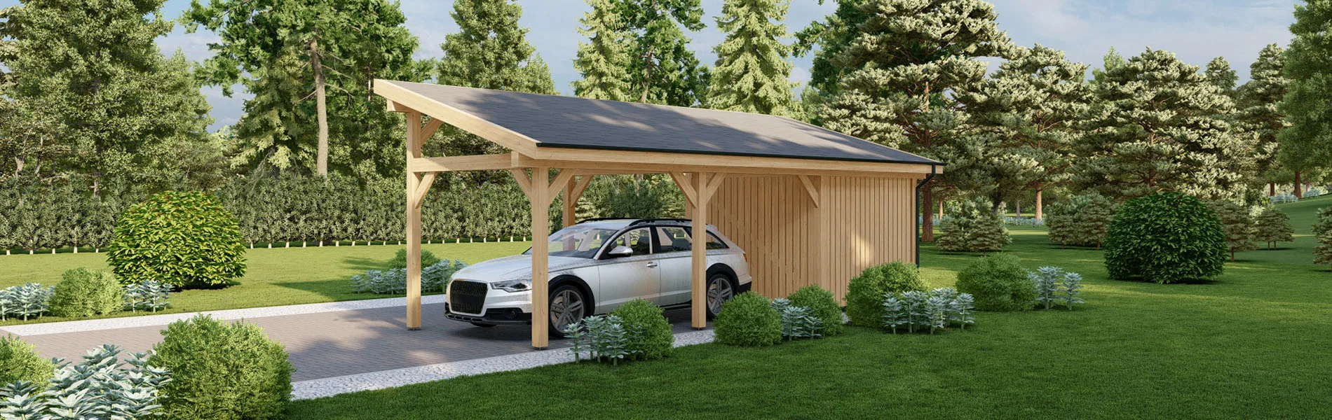 Unsere Carports werden aus nordischer Kiefer und Fichtenholz hergestellt, die nicht nur langlebig und robust sind, sondern auch umweltfreundlich und nachhaltig ist. Wir legen Wert auf Qualität in jedem Schritt des Herstellungsprozesses, um sicherzustellen, dass Ihr Carport lange Zeit hält und Sie zufriedenstellt.