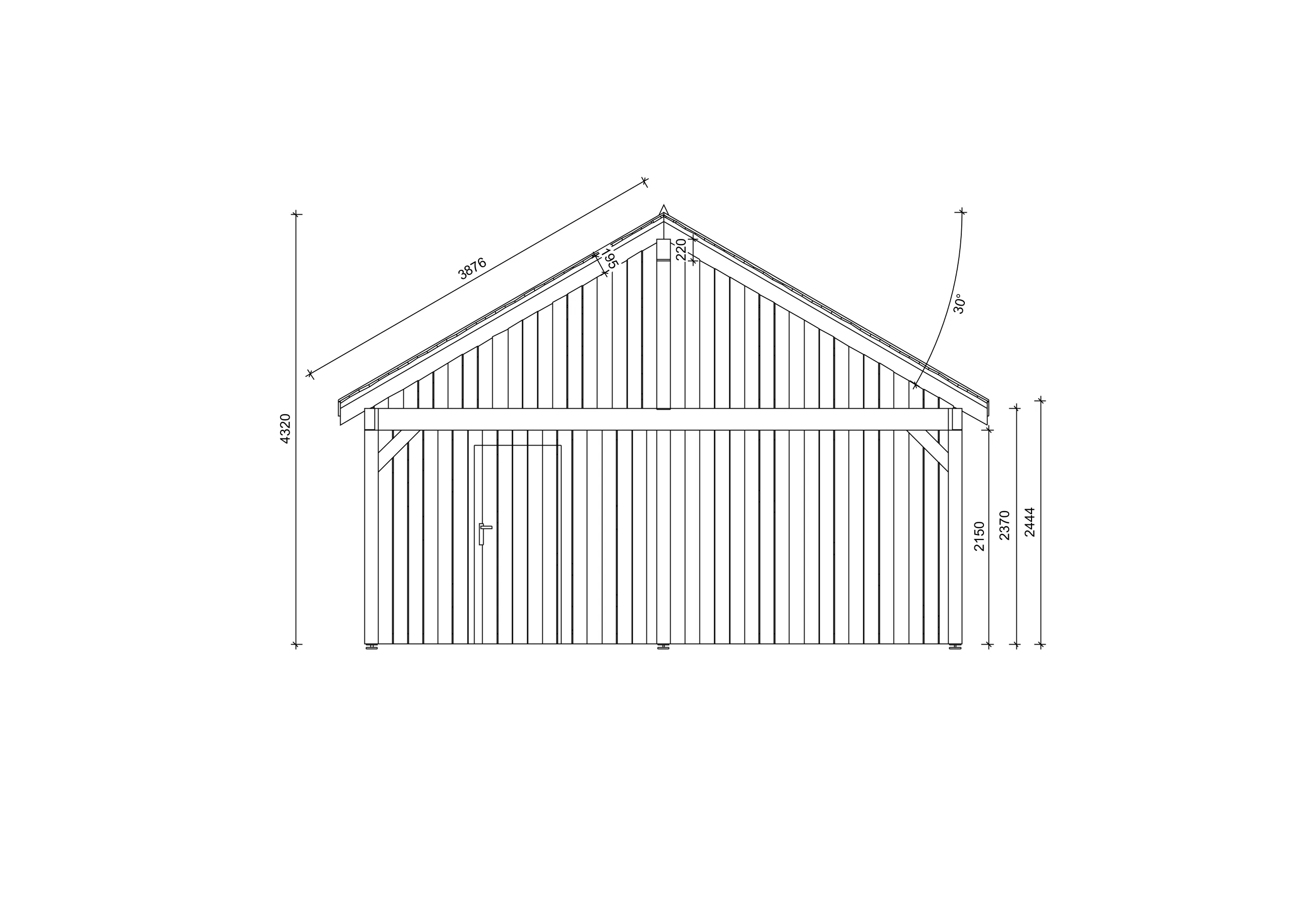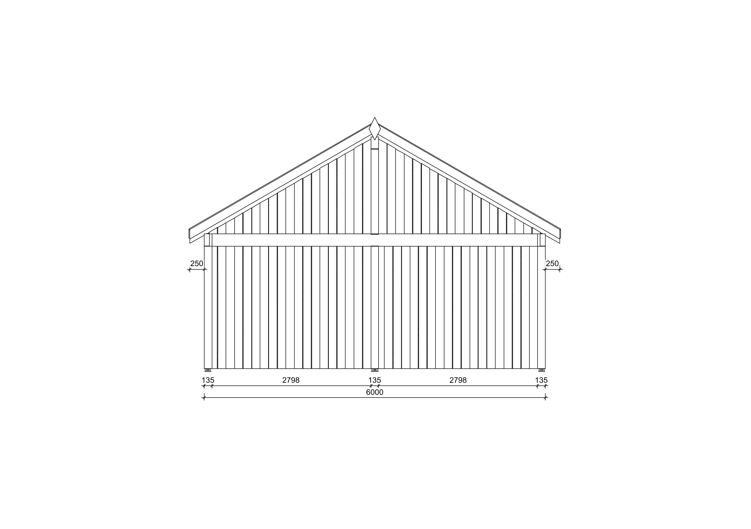 Je nach Modell kann der Dachstuhl entweder aus Konstruktionsholz gefertigt sein oder aus einzelnen Blockbohlen bestehen. Zum Dachstuhl gehören in der Regel Dachgiebel, Dachsparren sowie Abschlussbretter wie Ortgangbretter, Traufblenden und Windbretter.
