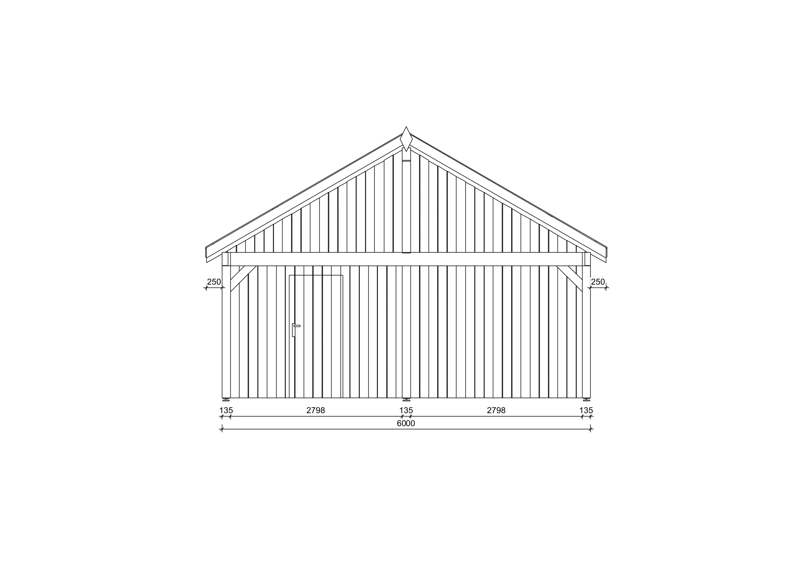Die Pfosten bestehen – je nach Modell – entweder aus hochwertigem Leimholz mit einem Querschnitt von 13,5 × 13,5 cm oder aus drei verschraubten Massivholzlamellen mit jeweils 44 × 120 mm Querschnitt.