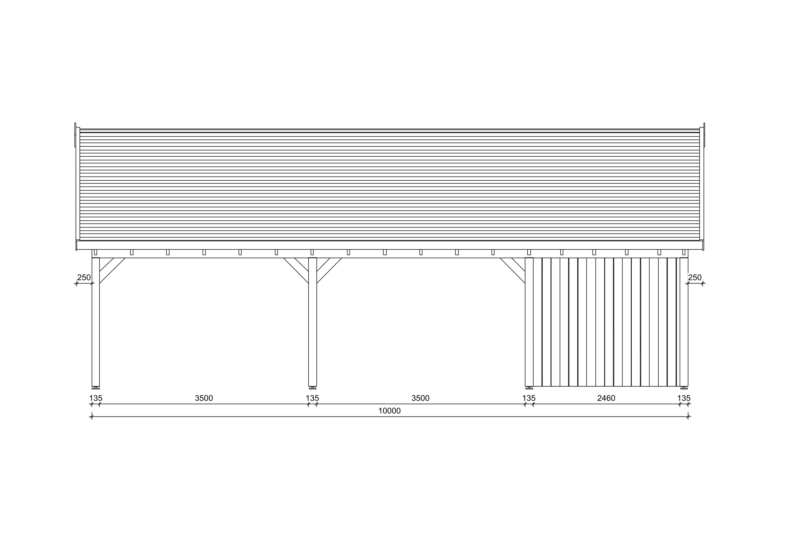 In dem Basis-Paket erhalten Sie die Pfosten, die Pfostenträger aus Metall, die Dachsparren, die Dachbretter sowie die notwendigen Schrauben und Nägel für die Montage des Carports, sowie eine Aufbauanleitung.