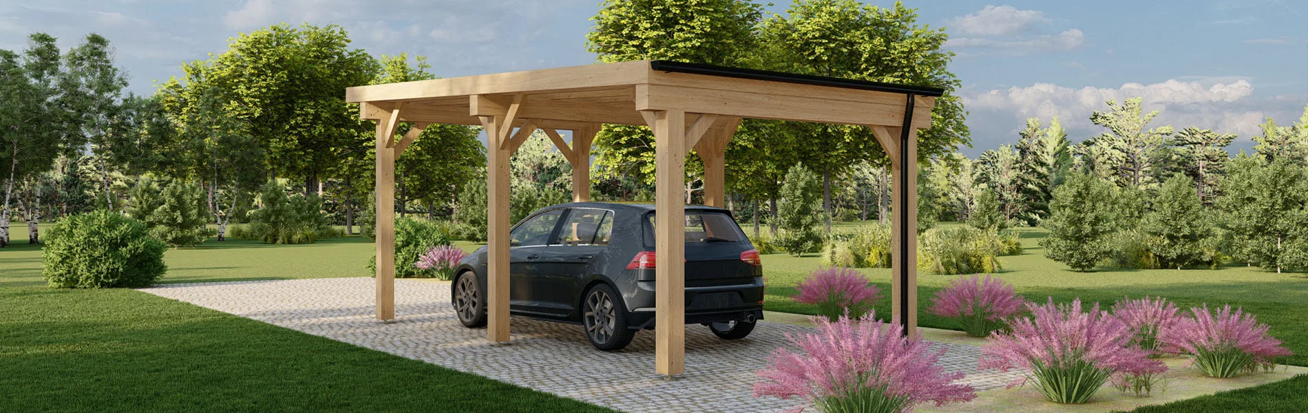 Unsere Carports werden aus nordischer Kiefer und Fichtenholz hergestellt, die nicht nur langlebig und robust sind, sondern auch umweltfreundlich und nachhaltig ist. Wir legen Wert auf Qualität in jedem Schritt des Herstellungsprozesses, um sicherzustellen, dass Ihr Carport lange Zeit hält und Sie zufriedenstellt.