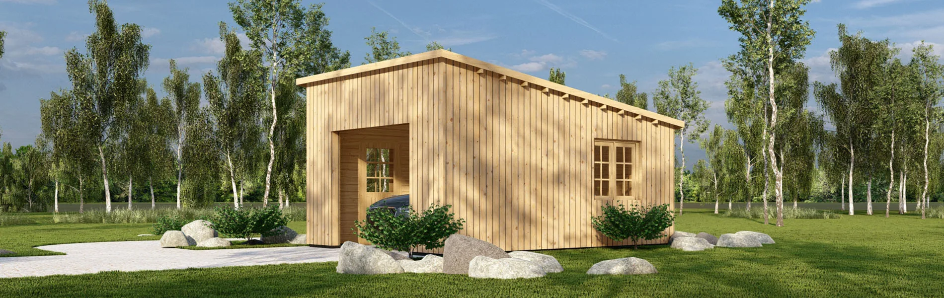 Tauchen Sie Ihr Blockbohlenhaus, Gartenhaus oder Holzgarage in natürliche Eleganz mit unserer senkrechten Holzverkleidung ein! Diese Verkleidungslösung verleiht jedem Produkt einen Hauch von modernem Charme und zeitloser Schönheit. Die Verkleidungsbretter aus nordischer Fichte strahlen Wärme und Gemütlichkeit aus. Mit einer Breite von 16x95mm bieten sie eine robuste und gleichzeitig ästhetisch ansprechende Oberfläche. Die unterstützenden Träger aus 30x50mm nordischer Kiefer sorgen für eine stabile Montage. Die senkrechte Ausrichtung verleiht Ihren Wänden eine dynamische und moderne Ästhetik, die perfekt mit verschiedenen Stilen harmoniert. Diese offene Schalung ermöglicht eine luftige und einladende Atmosphäre, während sie gleichzeitig für eine zuverlässige Struktur sorgt. Egal, ob Sie Ihrer Holzgarage einen Hauch von Natürlichkeit verleihen oder einem Blockbohlenhaus eine einladende Note verleihen möchten, unsere senkrechte Holzverkleidung ist die richtige Wahl.