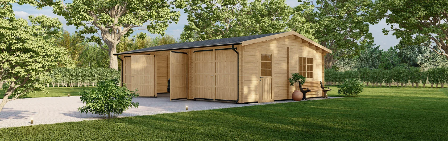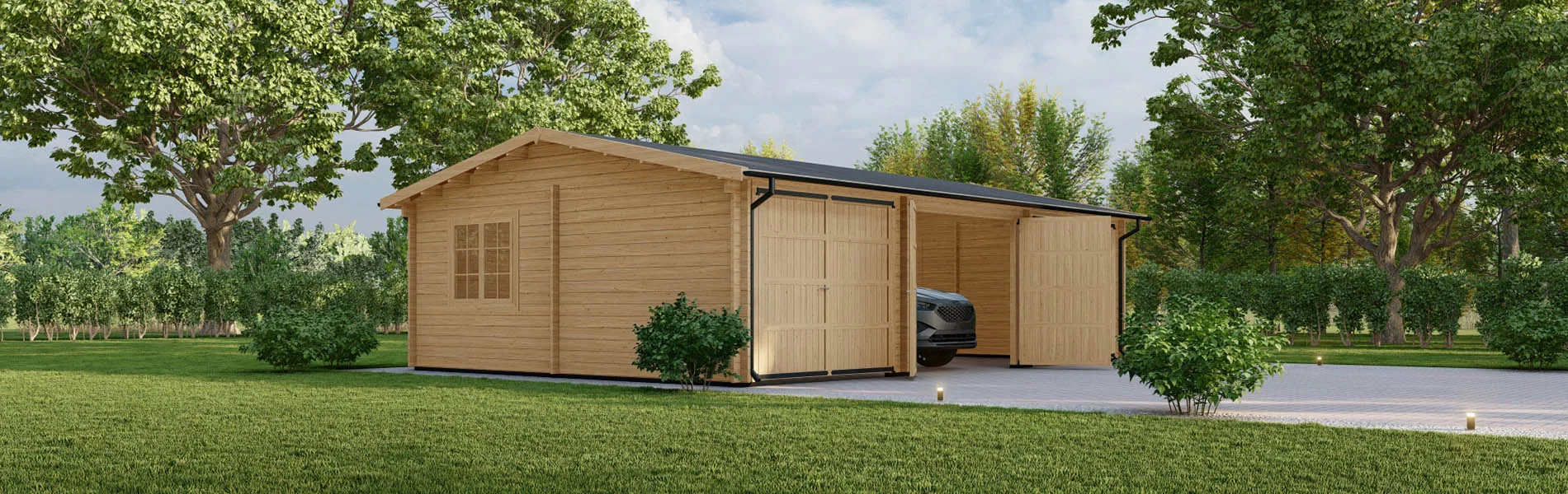 Tauchen Sie Ihr Blockbohlenhaus, Gartenhaus oder Holzgarage in natürliche Eleganz mit unserer senkrechten Holzverkleidung ein! Diese Verkleidungslösung verleiht jedem Produkt einen Hauch von modernem Charme und zeitloser Schönheit. Die Verkleidungsbretter aus nordischer Fichte strahlen Wärme und Gemütlichkeit aus. Mit einer Breite von 16x95mm bieten sie eine robuste und gleichzeitig ästhetisch ansprechende Oberfläche. Die unterstützenden Träger aus 30x50mm nordischer Kiefer sorgen für eine stabile Montage. Die senkrechte Ausrichtung verleiht Ihren Wänden eine dynamische und moderne Ästhetik, die perfekt mit verschiedenen Stilen harmoniert. Diese offene Schalung ermöglicht eine luftige und einladende Atmosphäre, während sie gleichzeitig für eine zuverlässige Struktur sorgt. Egal, ob Sie Ihrer Holzgarage einen Hauch von Natürlichkeit verleihen oder einem Blockbohlenhaus eine einladende Note verleihen möchten, unsere senkrechte Holzverkleidung ist die richtige Wahl.