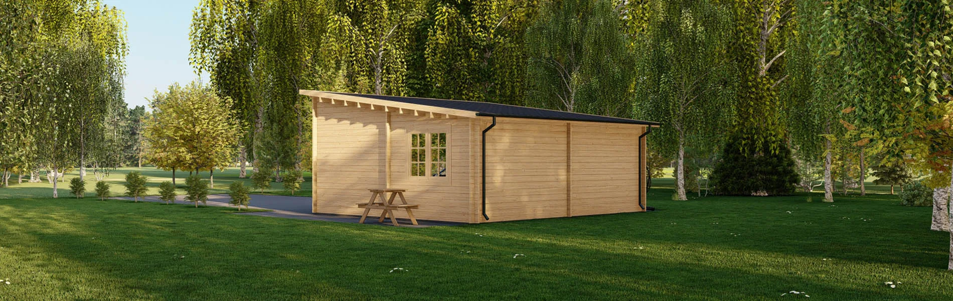 Erwecken Sie Ihr Blockbohlenhaus, Gartenhaus oder Holzgarage mit unserer diagonalen Holzverkleidung zu neuem Leben! Diese einzigartige Verkleidungslösung verleiht Ihrem Gebäude einen dynamischen und modernen Look, der garantiert alle Blicke auf sich zieht. Anders als bei herkömmlichen senkrechten oder horizontalen Verkleidungen sind die Bretter hier in einem Winkel von 45° angebracht, was eine interessante visuelle Wirkung erzeugt.