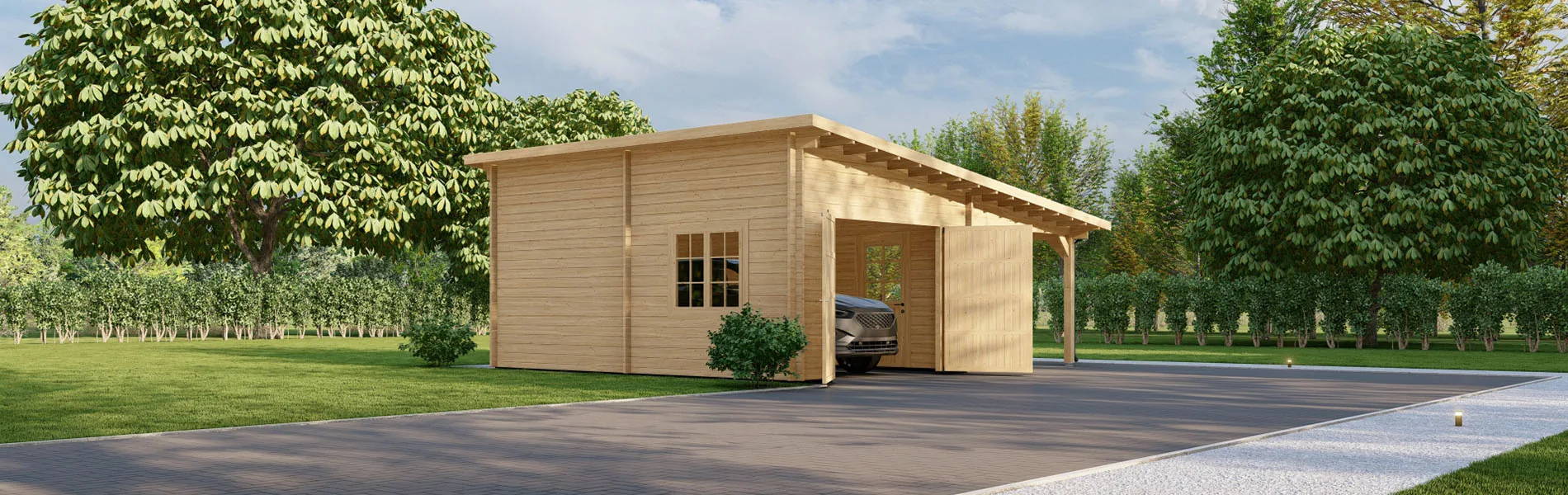 Tauchen Sie Ihr Blockbohlenhaus, Gartenhaus oder Holzgarage in natürliche Eleganz mit unserer senkrechten Holzverkleidung ein! Diese Verkleidungslösung verleiht jedem Produkt einen Hauch von modernem Charme und zeitloser Schönheit. Die Verkleidungsbretter aus nordischer Fichte strahlen Wärme und Gemütlichkeit aus. Mit einer Breite von 16x95mm bieten sie eine robuste und gleichzeitig ästhetisch ansprechende Oberfläche. Die unterstützenden Träger aus 30x50mm nordischer Kiefer sorgen für eine stabile Montage. Die senkrechte Ausrichtung verleiht Ihren Wänden eine dynamische und moderne Ästhetik, die perfekt mit verschiedenen Stilen harmoniert. Diese offene Schalung ermöglicht eine luftige und einladende Atmosphäre, während sie gleichzeitig für eine zuverlässige Struktur sorgt. Egal, ob Sie Ihrer Holzgarage einen Hauch von Natürlichkeit verleihen oder einem Blockbohlenhaus eine einladende Note verleihen möchten, unsere senkrechte Holzverkleidung ist die richtige Wahl.