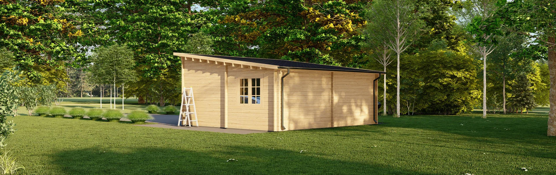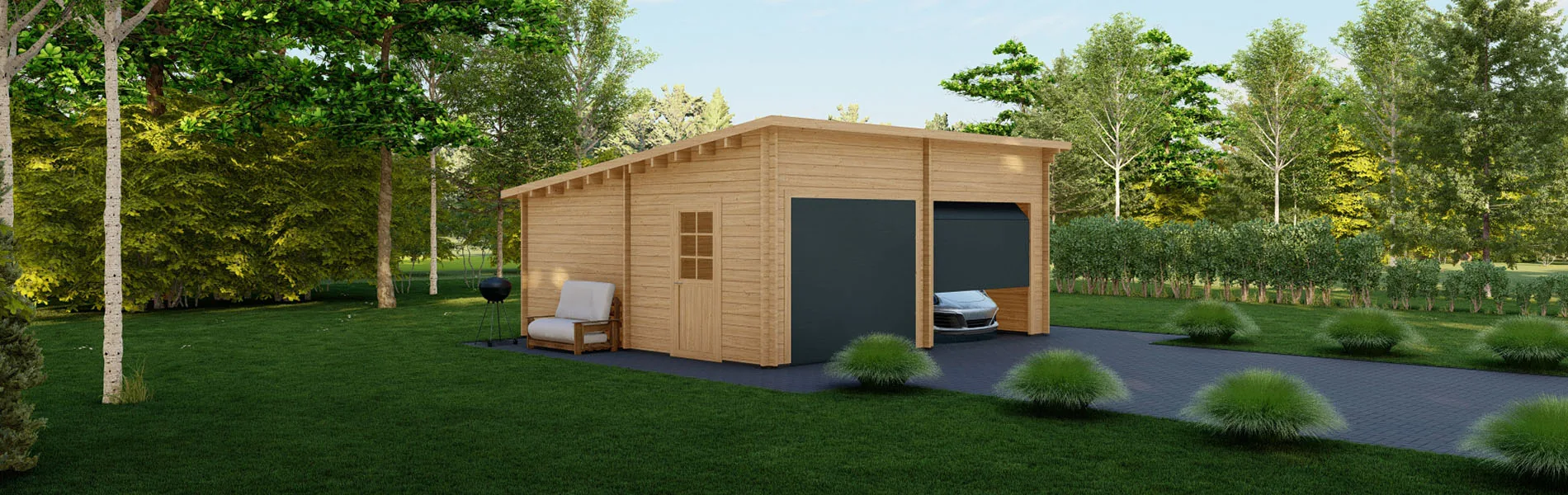 Holzgarage mit Pultdach Fagus V2, 6×6 m, BF 30 m2 mit Sektionaltoren