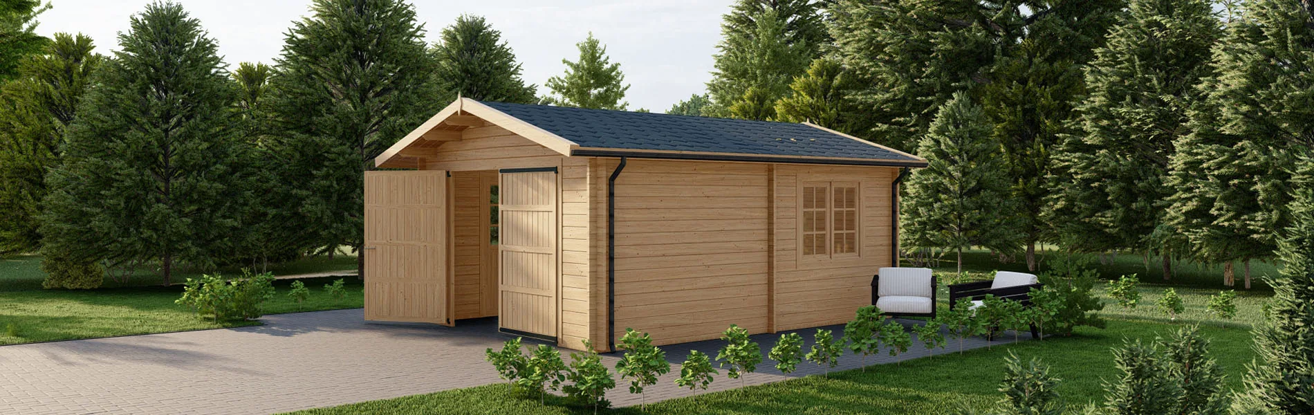 Holzgarage mit Satteldach Alnus, 4×6 m, BF 20 m2 mit Holztor