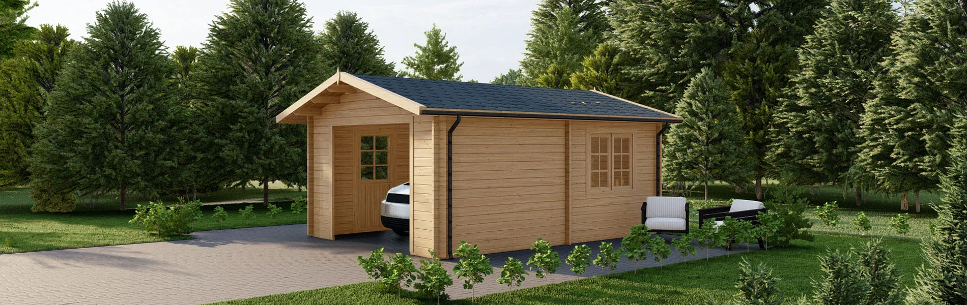 Tauchen Sie Ihr Blockbohlenhaus, Gartenhaus oder Holzgarage in natürliche Eleganz mit unserer senkrechten Holzverkleidung ein! Diese Verkleidungslösung verleiht jedem Produkt einen Hauch von modernem Charme und zeitloser Schönheit. Die Verkleidungsbretter aus nordischer Fichte strahlen Wärme und Gemütlichkeit aus. Mit einer Breite von 16x95mm bieten sie eine robuste und gleichzeitig ästhetisch ansprechende Oberfläche. Die unterstützenden Träger aus 30x50mm nordischer Kiefer sorgen für eine stabile Montage. Die senkrechte Ausrichtung verleiht Ihren Wänden eine dynamische und moderne Ästhetik, die perfekt mit verschiedenen Stilen harmoniert. Diese offene Schalung ermöglicht eine luftige und einladende Atmosphäre, während sie gleichzeitig für eine zuverlässige Struktur sorgt. Egal, ob Sie Ihrer Holzgarage einen Hauch von Natürlichkeit verleihen oder einem Blockbohlenhaus eine einladende Note verleihen möchten, unsere senkrechte Holzverkleidung ist die richtige Wahl.
