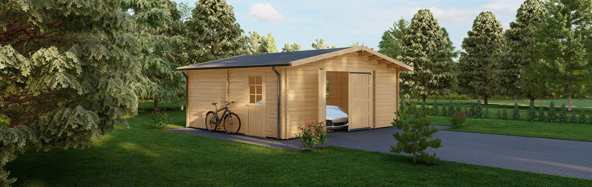 Entdecken Sie jetzt die Zuverlässigkeit und den Charme unserer Holzgarage Larix mit Holztor und verwandeln Sie Ihr Grundstück mit diesem traditionellen und dennoch funktionalen Unterstellplatz!