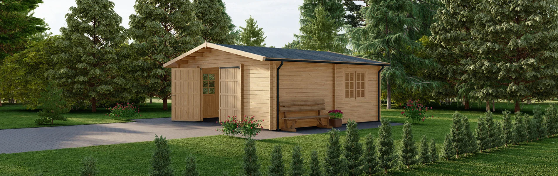 Holzgarage mit Satteldach Larix, 6×6 m, BF 30 m2 mit Holztor