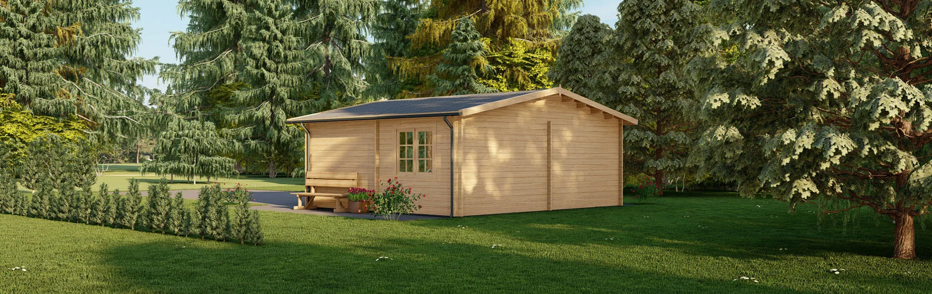 Die Außen- und Innenwände bestehen aus einzelnen Blockbohlen mit einer Stärke von 44mm. Bei den Modellen mit Holzverkleidung sind die Verschalungsbretter aus Holz im Basis Paket inbegriffen, was die Gesamtstärke der Außenwände auf 220mm erhöht. Für alle anderen Modelle besteht die Möglichkeit, die Holzverkleidung optional zu erwerben oder die Wände nur aus Blockbohlen zu belassen.