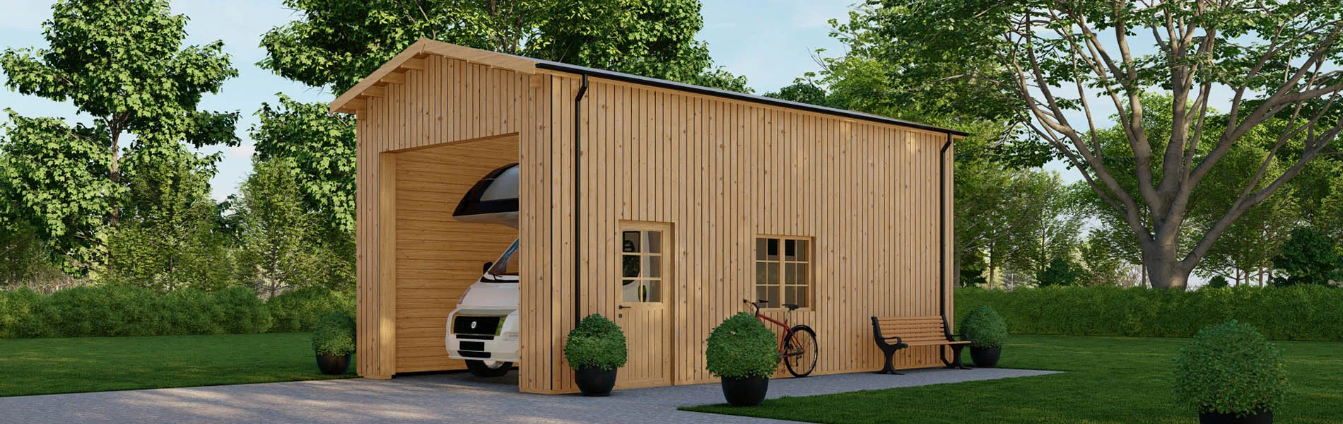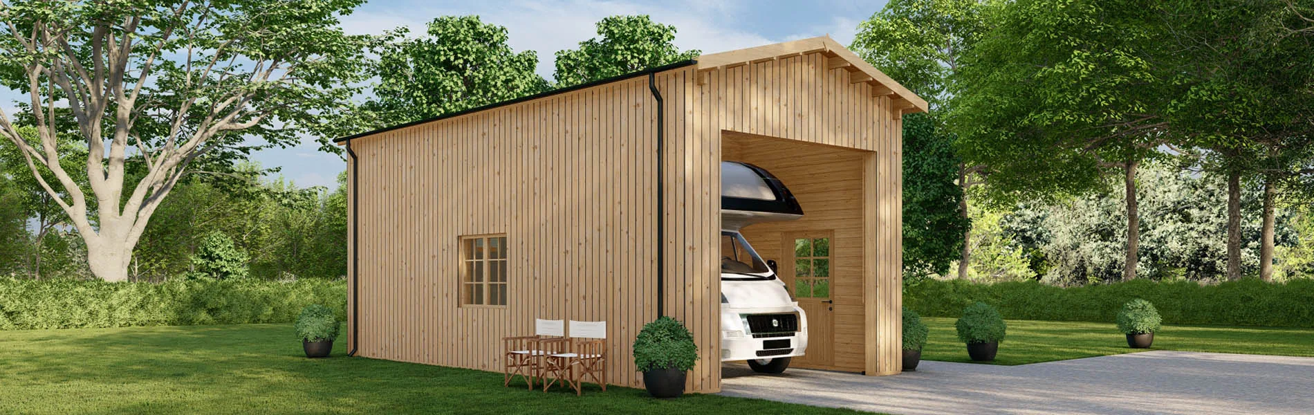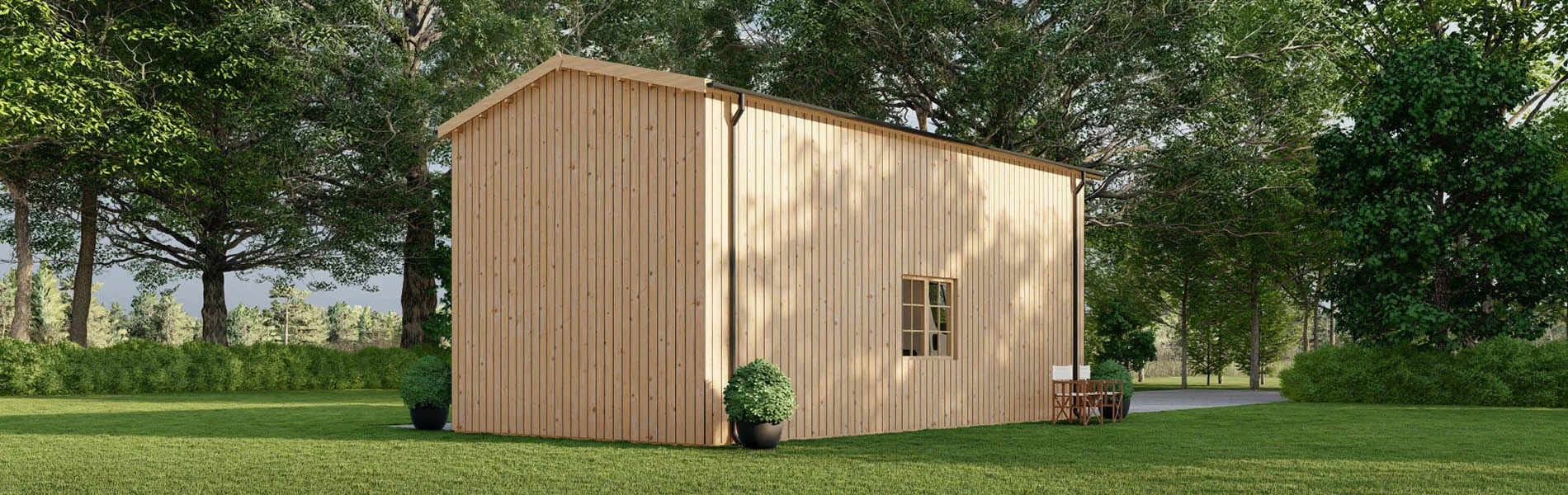 Tauchen Sie Ihr Blockbohlenhaus, Gartenhaus oder Holzgarage in natürliche Eleganz mit unserer senkrechten Holzverkleidung ein! Diese Verkleidungslösung verleiht jedem Produkt einen Hauch von modernem Charme und zeitloser Schönheit. Die Verkleidungsbretter aus nordischer Fichte strahlen Wärme und Gemütlichkeit aus. Mit einer Breite von 16x95mm bieten sie eine robuste und gleichzeitig ästhetisch ansprechende Oberfläche. Die unterstützenden Träger aus 30x50mm nordischer Kiefer sorgen für eine stabile Montage. Die senkrechte Ausrichtung verleiht Ihren Wänden eine dynamische und moderne Ästhetik, die perfekt mit verschiedenen Stilen harmoniert. Diese offene Schalung ermöglicht eine luftige und einladende Atmosphäre, während sie gleichzeitig für eine zuverlässige Struktur sorgt. Egal, ob Sie Ihrer Holzgarage einen Hauch von Natürlichkeit verleihen oder einem Blockbohlenhaus eine einladende Note verleihen möchten, unsere senkrechte Holzverkleidung ist die richtige Wahl.