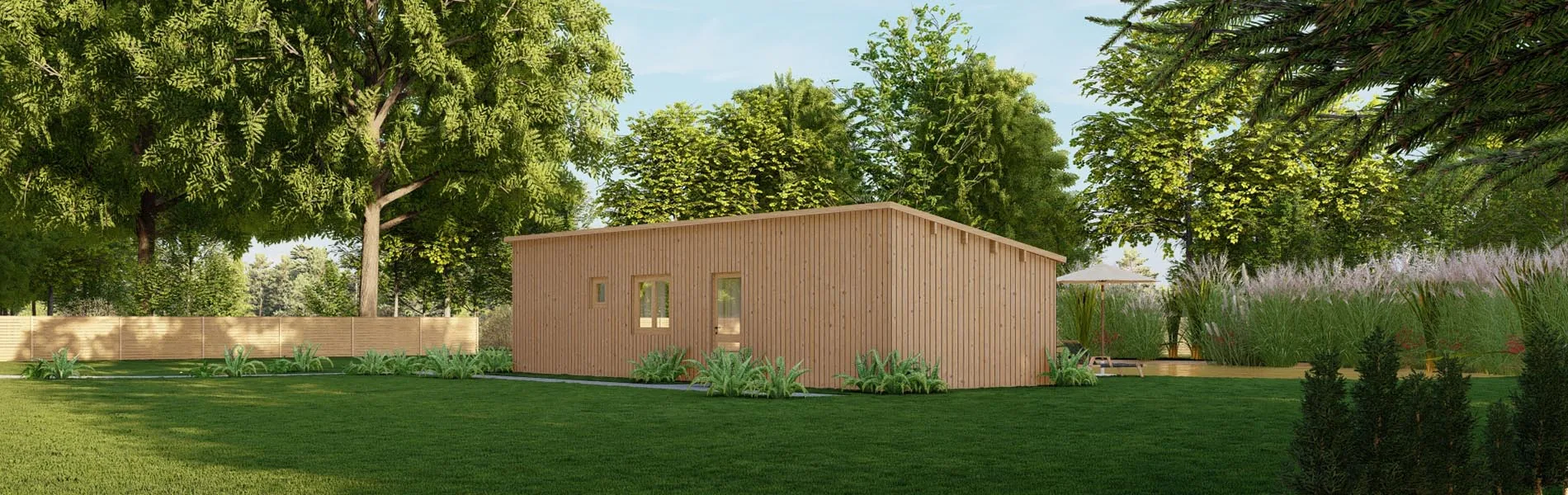 Stabilität und Langlebigkeit werden garantiert durch die Verwendung von hochwertigem Fichtenholz mit einer Wandstärke von 44 mm. Die durchdachte Raumaufteilung kann ihren individuellen Vorstellungen angepasst werden.