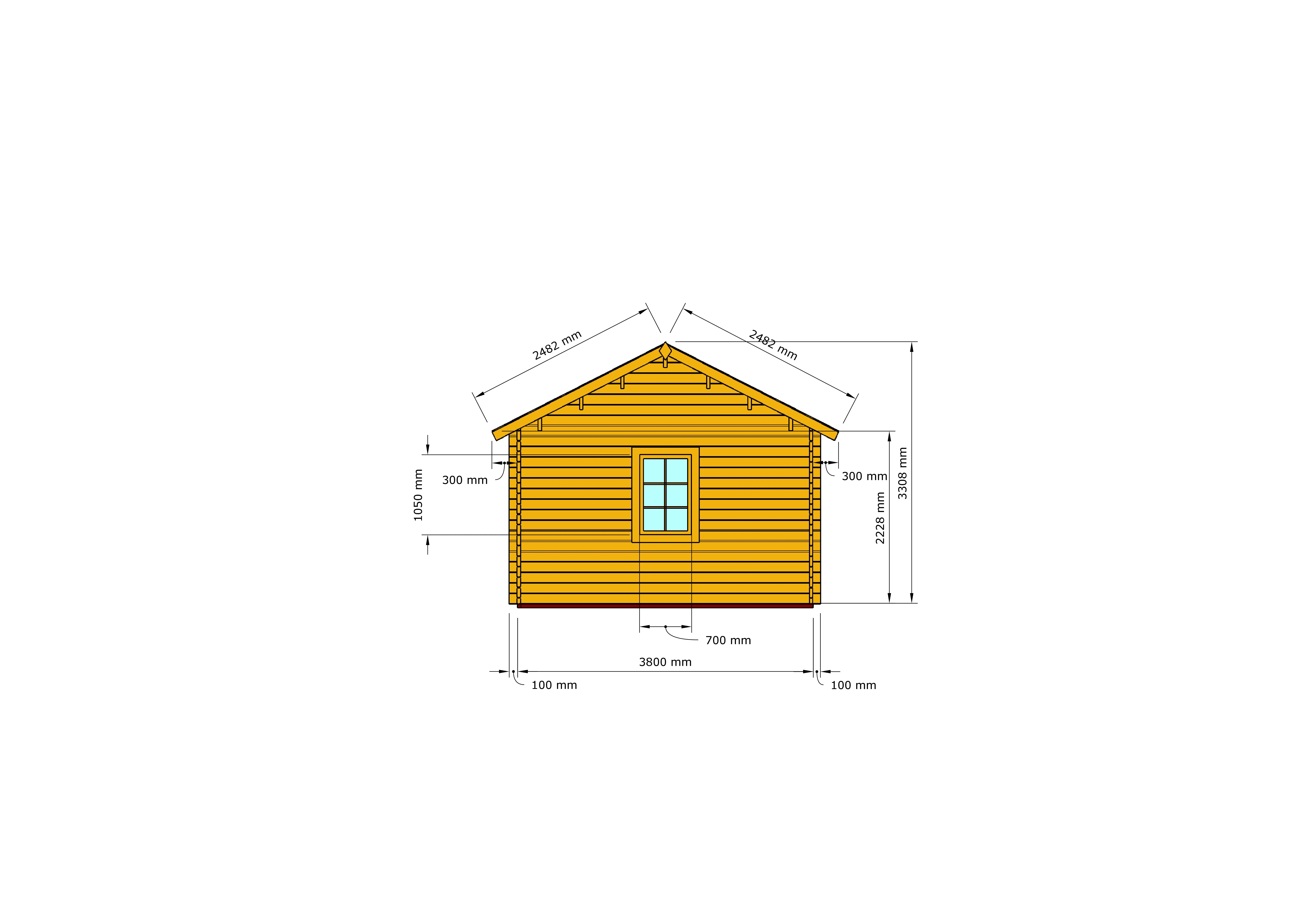 Die Dachgiebel und Dachsparren bestehen aus einzelnen Blockbohlen und sind Teil des Basispakets für den Rohbau. Für die Dacheindeckung sind Dachbretter mit Nut und Feder in einer Stärke von 20 mm vorgesehen. Darüber hinaus sind alle Abschlussbretter wie Ortgangbretter, Traufblenden und Windbretter aus Holz vorhanden. Gedämmte Modelle enthalten im Basispaket auch Sparren für die Dämmung, deren Stärke je nach Dämmungsstärke zwischen 100 mm und 350 mm variieren kann.