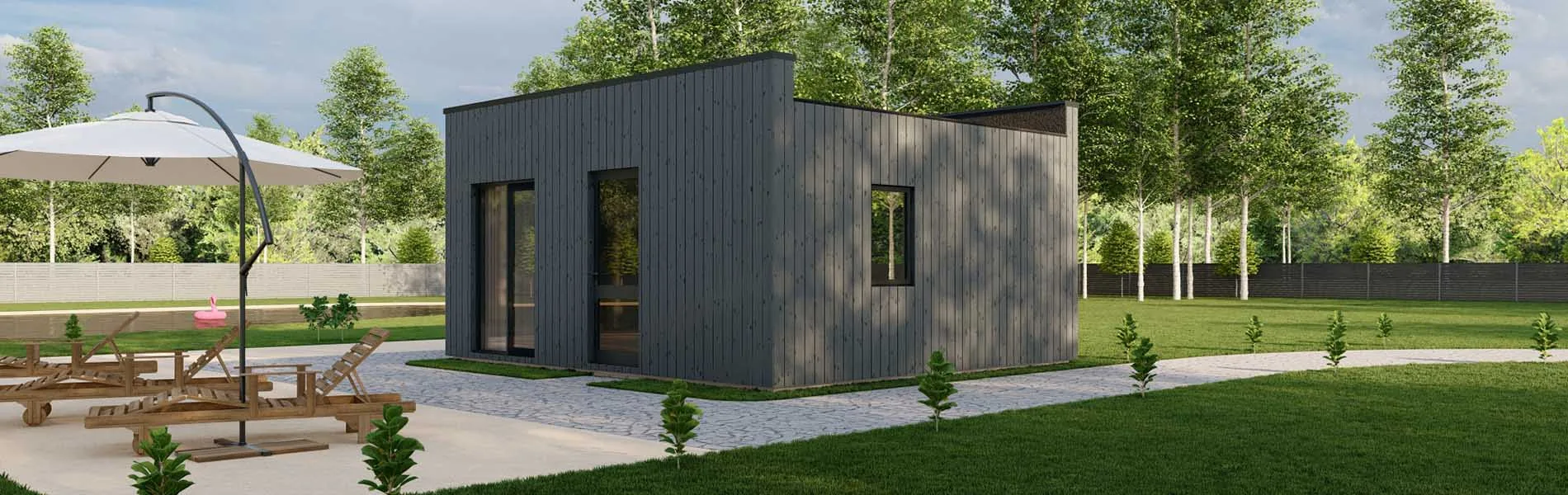 Holzhaus mit Flachdach Philadelphus
