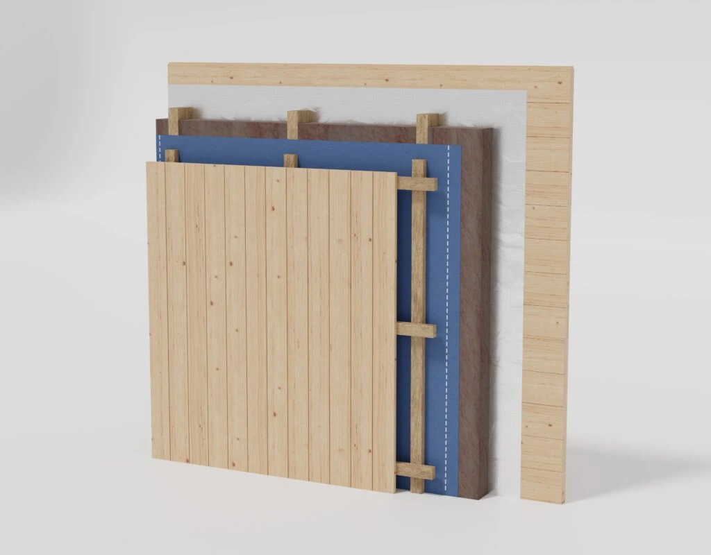 - Senkrechte Holzverkleidung mit Boden-Leisten-Schalung